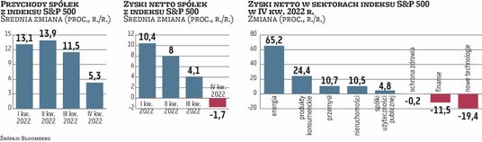 386 spośród spółek wchodzących w skład amerykańskiego indeksu S&P 500 opublikowało do czwartkowego otwarcia sesji raporty wynikowe za czwarty kwartał. Średni wzrost ich przychodów wyniósł 5,3 proc. rok do roku, podczas gdy w trzecim kwartale wynosił 11,5 proc. Zyski netto spadły natomiast średnio o 1,7 proc., podczas gdy kwartał wcześniej rosły one o 4,1 proc. To pierwszy od trzeciego kwartału 2020 roku spadek zysków spółek z S&P 500. Był on jednak powszechnie spodziewany. Czy ten sezon wyników przyniósł pozytywne niespodzianki?