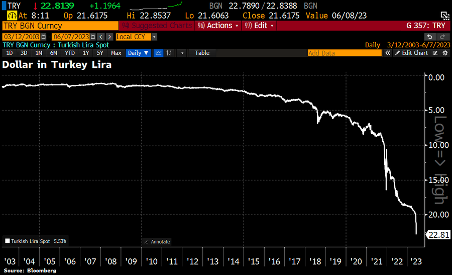Tymczasem według Liama Peacha, starszego ekonomisty rynków wschodzących w Capital Economics sygnały, że nowo wybrany ponownie prezydent Turcji Recep Tayyip Erdoğan jest skłonny do odejścia od niekonwencjonalnej polityki gospodarczej, doprowadziły do wzrostu optymizmu inwestorów wobec jego kraju.