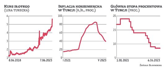 Lira turecka ustanowiła kolejny rekord słabości. Podczas wtorkowej sesji traciła nawet 7 proc., a jej notowania dochodziły do 23,17 liry za dolara. Od 28 maja, czyli od drugiej tury wyborów prezydenckich, straciła już 13 proc. Jej deprecjacja była szybsza, niż oczekiwali analitycy. Wszak mediana ich prognoz (zebranych przez agencję Bloomberg) sugerowała, że dopiero na koniec I kwartału 2024 r. notowania dojdą do 22 lir za USD. Rynek kontraktów terminowych wskazuje natomiast, że jest 80-proc. ryzyko, że w ciągu trzech miesięcy notowania dojdą do 25 lir za 1 dolara, a 60 proc. tego, że kurs będzie wynosił 27 lir. Analitycy Goldman Sachs niedawno zrewidowali prognozę dla tureckiej waluty. O ile wcześniej spodziewali się, że notowania dojdą w ciągu 12 miesięcy do 22 lir za 1 USD, o tyle teraz spodziewają się, że sięgną 28 lir. Niewątpliwie w nadchodzących tygodniach wielu analityków skoryguje swoje prognozy wobec tureckiej waluty. Czy jest jednak jakakolwiek szansa na pozytywne rewizje?