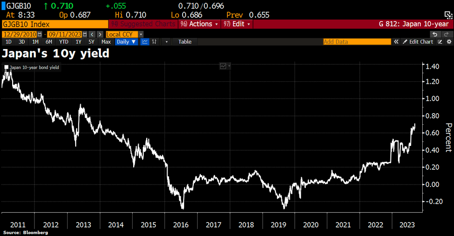 Kontrola krzywej dochodowości Banku Japonii (YCC) ma na celu utrzymanie rentowności długoterminowych 10-letnich japońskich obligacji rządowych na poziomie około zera. Na lipcowym posiedzeniu dotyczącym polityki pieniężnej bank zdecydował się na prowadzenie YCC z większą elastycznością, ustalając faktycznie górną granicę rentowności obligacji długoterminowych, na jaką pozwoliłby bank, na poziomie 1%.