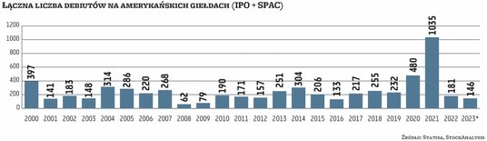 Ponadto rentowność obligacji nie zachęca inwestorów, aby brać na siebie ryzyko płynące z IPO. W październiku rentowność dziesięcioletnich obligacji skarbowych USA sięgnęła najwyższego od lat poziomu 5 proc. Obecnie wynosi ok. 4,2 proc., co nadal jest bardzo wysokim poziomem. Atrakcyjne kupony z obligacji powodują, że popyt inwestorów na akcje w IPO jest niewystarczający, a same spółki nie chcą wchodzić na giełdę w takim otoczeniu, bo nie są w stanie osiągnąć satysfakcjonujących wycen.
