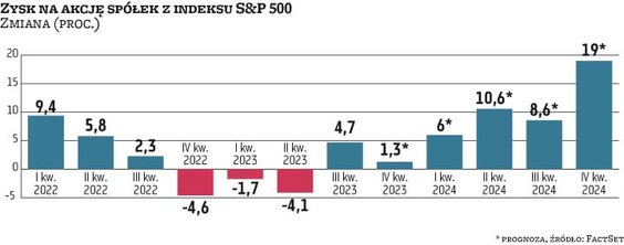 Czy zaczynający się sezon wyników kwartalnych w USA może przynieść inwestorom dużo pozytywnych niespodzianek? Jak na razie, według wyliczeń firmy badawczej FactSet, analitycy średnio szacują, że zyski na akcję spółek z indeksu S&P 500 wzrosły w czwartym kwartale 2023 r. o 1,3 proc. Byłby to już drugi kwartał z rzędu przynoszący poprawę zysków.
