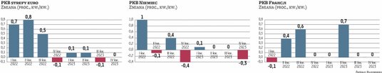 Tymczasem nienależące do strefy euro (ale mocno powiązane z nią gospodarczo) Czechy doświadczyły w czwartym kwartale, zgodnego z prognozami, wzrostu PKB o 0,2 proc. Nastąpił on po spadku o 0,6 proc. w poprzednich trzech miesiącach. Przez cały 2023 r. gospodarka Czech skurczyła się o 0,4 proc. Czeski Bank Narodowy prognozuje, że w 2024 r. powiększy się ona natomiast o 1,2 proc.