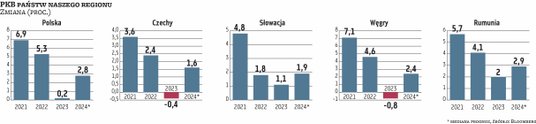 2023 rok nie był łaskawy dla gospodarek państw Europy Środkowo-Wschodniej należących do Unii Europejskiej. Polski PKB wzrósł o zaledwie 0,2 proc., a gospodarki pięciu krajów (Estonii, Łotwy, Litwy, Czech i Węgier) skurczyły się. Wzrost PKB wyższy niż 2 proc. wypracowała tylko Chorwacja, której gospodarka powiększyła się o 2,6 proc. Państwom naszego regionu ciążyły m.in.: podwyższona inflacja, stosunkowo wysokie stopy procentowe oraz kiepska koniunktura w Niemczech. Zacinały się zarówno eksportowe, jak i konsumpcyjne silniki wzrostu gospodarczego. W tym roku ma być już jednak wyraźnie lepiej. Hamownie inflacji oraz stopniowe luzowanie polityki pieniężnej mają przyczynić się do poprawy koniunktury w regonie. Zanosi się więc na odbicie w górę wzrostu gospodarczego. O ile oczywiście nie nastąpią żadne nowe wstrząsy mogące nim zachwiać.