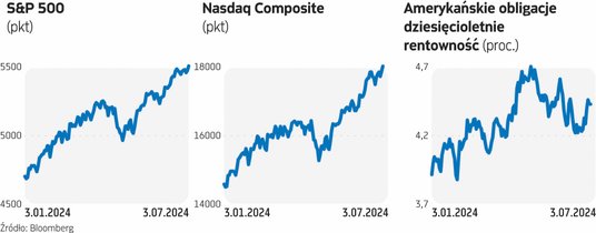 Jak na razie rosnące szanse zwycięstwa Trumpa nie popsuły nastrojów inwestorom giełdowym. Indeks S&P 500 od początku roku do środowego otwarcia zyskał 15,5 proc. I półrocze roku wyborczego było dla niego najlepsze od 1976 r., a w dzień po fatalnej dla Bidena debacie ustanowił rekord. We wtorek przebił poziom 5500 pkt, a Nasdaq Composite przekroczył 18 000 pkt.