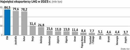 Cały globalny handel gazem skroplonym wyniósł w 2023 r. rekordowe 401,4 mln ton i był o 8,4 mln ton większy niż rok wcześniej. Największym eksporterem tego surowca były Stany Zjednoczone, które sprzedały na świecie 84,5 mln ton LNG, o 8,9 mln więcej niż w 2022 r. Od 2021 r. powiększyły one swój eksport tego surowca o 17,5 mln ton, czyli o więcej, niż na przykład sprzedaje go na rynkach światowych Algieria, a od dołka z 2020 r. aż o 39,5 mln ton, czyli o więcej, niż wynosi rosyjski eksport.