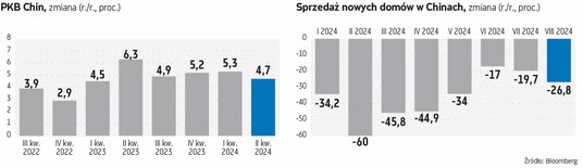 Wyznaczony przez decydentów z Pekinu cel chińskiego wzrostu gospodarczego na 2024 r. wynosi „około 5 proc.”. O ile na początku roku wydawał się on mało ambitny, to później analitycy zaczęli snuć prognozy mówiące, że Chinom nie uda się go osiągnąć. O ile w I kwartale PKB wzrósł o 5,3 proc., o tyle w drugim już tylko o 4,7 proc.