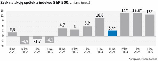 Akcje spółek z indeksu S&P 500, które w tym sezonie wyników przedstawiły lepsze od oczekiwań raporty kwartalne, przeciętnie rosły w dniu ich publikacji o 1,74 proc. mocniej niż indeks – wynika z wyliczeń analityków Bloomberg Intelligence. Te zwyżki były więc największe od co najmniej 2019 r. Inwestorzy są więc skorzy do nagradzania spółek, które osiągną wyniki lepsze od prognoz.