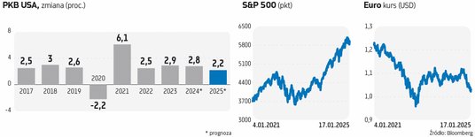 – Cztery lata temu byliśmy w objęciach pandemii stulecia, największego załamania gospodarczego od wielkiego kryzysu i największego ataku na demokrację od czasów wojny domowej. Zjednoczyliśmy się jednak jako Amerykanie i poradziliśmy sobie z tym. Staliśmy się silniejsi, bogatsi i bardziej bezpieczni – powiedział Joe Biden w jednym z ostatnich dni swojej prezydentury. Można z jego słowami polemizować. Bo czy kryzys rzeczywiście był w USA wówczas tak głęboki, a zagrożenie dla demokracji tak duże? Nie ulega jednak wątpliwości, że gospodarka USA przez ostatnie cztery lata uniknęła recesji i radziła sobie lepiej niż inne duże gospodarki rozwinięte. Ale też amerykańscy konsumenci nie odczuwali tego na tyle, by ponownie powierzyć rządy demokratom. Nastroje tuż przed inauguracją nowej kadencji prezydenckiej Donalda Trumpa są z pewnością zupełnie inne niż wtedy, gdy rządy obejmował Joe Biden.