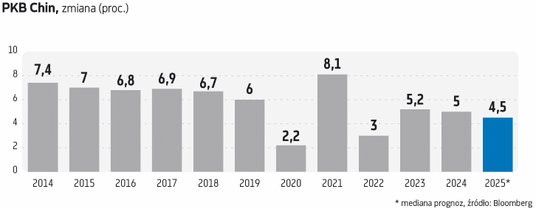 W całej obecnej wojnie handlowej pewne jest tylko jedno: nikt nie spodziewał się, że Trump aż tak mocno uderzy w Chiny. Owszem, obecny prezydent USA wiele przedtem mówił o tym, jak bardzo Chiny „wykorzystują Amerykę”, ale traktowano to zwykle jako retoryczne „ozdobniki”. Pamiętano, że za swojej pierwszej kadencji zaczął wojnę handlową z Państwem Środka, ale konflikt ten, w porównaniu z obecnym, miał dosyć ograniczoną skalę. O ile jeszcze w marcu 2018 r. średnia amerykańska stawka ceł na chińskie produkty wynosiła 3,8 proc., to na koniec pierwszej kadencji Trumpa sięgała 19,3 proc. Było to uciążliwe dla chińskich eksporterów i przyczyniło się do spowolnienia gospodarki ChRL, ale dało się wytrzymać. Administracja Joe Bidena utrzymała większość ceł Trumpa, a nawet lekko zwiększyła średnią ich stawkę – do 20,8 proc. W lutym i w marcu Trump podwyższył ją o 20 pkt proc., argumentując to m.in. tym, że Chiny nie pomagają USA w powstrzymaniu napływu fentanylu, czyli niebezpiecznego narkotyku opioidowego. 2 kwietnia, w ramach mechanizmu ceł wzajemnych, ogłosił, że Chiny zostaną oclone na dodatkowo 34 proc. Chińczycy odpowiedzieli cłem na cały import z USA również w wysokości 34 proc. Trump podwyższył swoje cło do 104 proc., Chińczycy podnieśli swoje do 84 proc., a USA odpowiedziały podwyżką do 125 proc. To daje średnią stawkę ceł na import z Chin do USA wynoszącą około 150 proc. To stawka zaporowa.