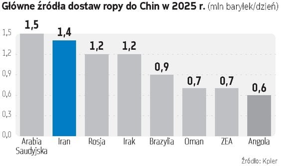 Oficjalne dane dotyczące chińskiego importu często pokazują bardzo mało ropy pochodzącej z Iranu.. Na przykład statystyki Obserwatorium Złożoności Gospodarczych (OEC) wskazują, że w 2024 r. cały import z Iranu do Chin wynosił tylko 4,4 mld dol. Trzeba jednak brać pod uwagę to, że irańska ropa jest często przemianowywana w statystykach na „malajską” lub „indonezyjską”, aby obejść sankcje. Firmy śledzące transporty, takie jak Kpler i Vortexa, wskazują jednak, że ropa jest największym importem Chin z Iranu. Szacuje się, że ten handel jest wart ponad 40 mld dol. rocznie i pokrywa około 15 proc. chińskiego zapotrzebowania na ropę. Ale to nie wszystko – Chiny kupują w Iranie także różnego rodzaju tworzywa sztuczne, chemikalia, siarkę, metale oraz artykuły żywnościowe. Cały import z Iranu do Chin zapewne więc przekracza 40 mld dol. rocznie. Do tego trzeba dodać import z innych krajów regionu przechodzący przez Cieśninę Ormuz. Według OEC, z Arabii Saudyjskiej do ChRL importowano w 2024 r. towary warte łącznie 57,6 mld dol. z ZEA 36,3 mld dol. z Kataru 19,6 mld dol. z Kuwejtu 11,8 mld dol. a z Iraku 38,3 mld dol. Nic dziwnego więc, że Chiny (według nieoficjalnych doniesień) naciskały na Iran, by prowadził mniej agresywną blokadę Cieśniny Ormuz. By statki, które w systemach nawigacyjnych wyświetlały komunikat, że należą do chińskich armatorów i mają chińskie załogi nie były atakowane przez Iran.