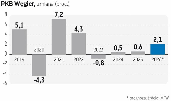 Międzynarodowy Fundusz Walutowy spodziewa się wzrostu PKB Węgier w tym roku o 2,1 proc., Komisja Europejska o 2,3 proc., a Narodowy Bank Węgier o 2,4 proc. Mediana prognoz analityków zebranych przez agencję Bloomberga mówi o wzroście o 2 proc. Największymi pesymistami są analitycy banków Julius Baer i JPMorgan Chase, którzy spodziewają się zwyżki o 1,4 proc., a największymi optymistami eksperci BofA Merrill Lynch, oczekujący wzrostu wynoszącego 2,7 proc. Analitycy wyraźnie nastawiali się więc na ożywienie gospodarcze na Węgrzech, ale wojna bliskowschodnia może mu poważnie zaszkodzić. Sama zmiana władzy w Budapeszcie raczej niewiele zmieniłaby w perspektywach gospodarczych Węgier na ten rok. To jak zmienią się one w nadchodzących latach, jest dużo większą niewiadomą. Rozwiązywanie problemów strukturalnych kraju „bratanków” zajmie jednak pewnie więcej niż jedną kadencję. Jeśli dojdzie do zmiany ekipy rządzącej, to ewentualna nowa władza może rozczarować wyborców, a wiele elementów systemu Orbana i tak pewnie zostanie utrzymane.