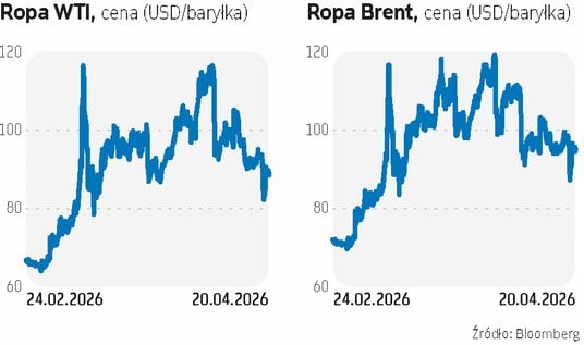 Ropa gatunku WTI drożała w poniedziałek rano o około 5 proc. Jej cena wynosiła wówczas około 88 USD za baryłkę. Cena ropy gatunku WTI sięgała natomiast 95 USD za baryłkę. Mimo tego skoku, ropa była wciąż tańsza niż choćby w połowie zeszłego tygodnia. Do jej dużej przeceny, wynoszącej około 10 proc., doszło w piątek, po tym, jak irański minister spraw zagranicznych Abbas Araghchi ogłosił, że Cieśnina Ormuz jest otwarta dla żeglugi. W sobotę jednak dwa statki próbujące przepłynąć cieśninę zostały zaatakowane przez irański Korpus Strażników Rewolucji Islamskiej. Władze Iranu ogłosiły, że cieśnina została zamknięta, gdyż Amerykanie nie znieśli swojej blokady irańskich portów. W niedzielę Marynarka Wojenna USA ostrzelała natomiast i zajęła płynący pod irańską banderą kontenerowiec o nazwie Touska. Akcję tę przeprowadził niszczyciel USS Spruance, a doszło do niej blisko irańskiego wybrzeża. Władze Iranu ogłosiły więc, że nie wyślą swojej delegacji do Islamabadu na kolejną rundę rozmów rozejmowych.