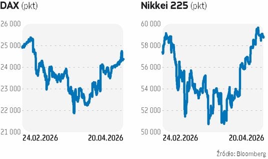 Poprawę sytuacji widać nie tylko na giełdach amerykańskich. Japoński Nikkei 225 też ustanowił w zeszłym tygodniu rekord. O ile w marcu koreański KOSPI otarł się o bessę, to na poniedziałkowym zamknięciu był tylko 2 proc. niżej od rekordu z lutego i aż 48 proc. wyżej niż na początku roku. Niemieckiemu indeksowi DAX do rekordu ze stycznia brakowało w poniedziałek jeszcze prawie 5 proc., ale od dołka z marca odbił się o 11 proc. Saudyjski indeks Tadawul All Share zyskał od marcowego dołka prawie 12 proc., a izraelski TA-35 ustanowił 15 kwietnia kolejny rekord.