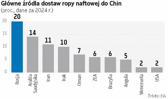 Pekin mogło zaniepokoić również to, że niedługo po ogłoszeniu blokady irańskich portów, USA zawarły porozumienie obronne z Indonezją. Zwiększa ono ryzyko, że Amerykanie będą mogli polować na objęte sankcjami statki w Cieśninie Malakka, przez którą przechodzi znaczna część chińskiego handlu zagranicznego. Niedawno też USA i Maroko podpisały „mapę drogową” dotyczącą współpracy wojskowej. Administracja Trumpa zdobyła więc ważny przyczółek nad Cieśniną Gibraltarską. Na tym tle „szarża” Trumpa w sprawie Grenlandii, ani pomysły budowy „riwiery” w Strefie Gazy nie wyglądają już aż tak „wariacko” jak się prezentowały na pierwszy rzut oka. Toczą się przecież negocjacje w sprawie budowy nowych baz na Grenlandii (stanowiącej jeden z brzegów morskiego korytarza GIUK łączącego Ocean Lodowaty z Atlantykiem), a obecność amerykańskich sił wojskowych w Gazie i w planowanych bazach w Izraelu zwiększy projekcję siły USA we wschodniej części Morza Śródziemnego, w tym w pobliżu wejścia do Kanału Sueskiego. Może to sprawić, że Chinom będzie dużo trudniej kupować rosyjską ropę objętą sankcjami – które Amerykanie łaskawie poluzowali w czasie wojny z Iranem. Rosja jak dotąd odpowiadała za około 20 proc. importu ropy do ChRL. Seria ukraińskich ataków na jej rafinerie i terminale naftowe ograniczyła jej jednak możliwości eksportowe. Chiny mogą być pewne jedynie dostaw ropy tłoczonej z Rosji rurociągami.