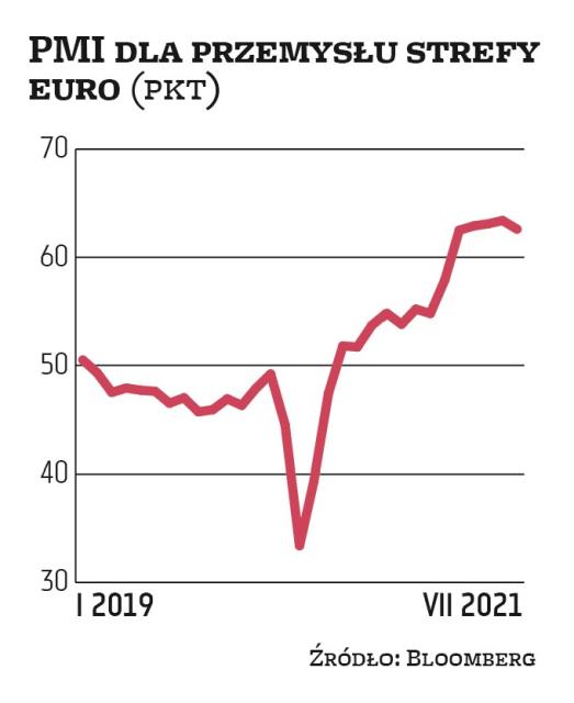 Wspólny wskaźnik PMI dla przemysłu i sektora usług strefy euro wzrósł z 59,5 pkt w czerwcu do 60,6 pkt w lipcu, czyli do najwyższego poziomu od 21 lat. Indeks dla sektora usług skoczył z 58,3 pkt do 60,4 pkt i znalazł się najwyżej od 2006 r. Wskaźnik dla przemysłu spadł jednak z 63,4 pkt do 62,6 pkt, najniższego poziomu od czterech miesięcy, do czego przyczyniły się zakłócenia w łańcuchach dostaw. Reakcja rynków na te wstępne dane była umiarkowanie pozytywna. Większość europejskich indeksów giełdowych lekko zyskiwała podczas piątkowej sesji.
