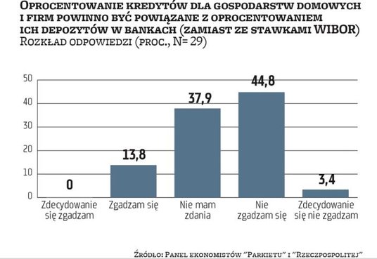 – Moim zdaniem takie rozwiązanie niewiele by dało. Banki finansują kredyty z wielu źródeł, a depozyty są tylko jednym z nich. W związku z tym stawka depozytów nie odzwierciedla kosztu finansowania banków. Jeżeli banki będą zmuszone kwotować w oparciu o stawki depozytów, to po prostu zażądają od klientów wyższej stałej marży jako rekompensaty za dodatkowe ryzyko i koszty zabezpieczenia – ocenia dr Piotr Dworczak, profesor na Uniwersytecie Northwestern i badacz think tanku GRAPE. To jeden z 14 uczestników XI rundy panelu ekonomistów „Parkietu" i „Rzeczpospolitej", którzy nie zgodzili się z tezą, że „oprocentowanie kredytów dla gospodarstw domowych i firm powinno być powiązane z oprocentowaniem ich depozytów w bankach (zamiast ze stawkami WIBOR)". Łącznie w badaniu udział wzięło 29 naukowców, więc przeciwko temu zdroworozsądkowemu na pierwszy rzut oka pomysłowi sprzeciwiło się 48 proc. z nich. Zarazem tylko niespełna 14 proc. opowiedziało się za zastąpieniem WIBOR-u jakąś stawką odzwierciedlającą oprocentowanie depozytów. Spora część ankietowanych, 38 proc., nie ma na ten temat wyrobionego zdania.