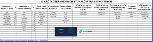 Krótkoterminowy złoty krzyż, utworzony przez średnie kroczące z 5 i 10 sesji pojawił się na 7 wykresach, m. in. Dino Polska i mBanku. 3 spółki są wyprzedane według oscylatora RSI(5), a sześć według CCI(5). Kanał 5-sesyjny opuściły górą (sygnał strategii Żółwi): CD Projekt i Eurocash.