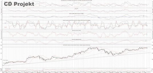 CD Projekt jest relatywnie silny i to jedna z niewielu spółek, której notowania rosną w szerokim ujęciu czasowym. Strategia jest prosta – gramy zgodnie z długoterminowym trendem i liczymy na pokonanie szczytu hossy. Opór jest w okolicy 225 zł. Warto zwrócić uwagę, że bardzo zawęziły się wstęgi Bollingera, co sugeruje przygotowanie do wybicia. Jeśli ogólne nastroje się poprawią, kurs powinien ruszyć w górę. Poza tym jest to jeden z ulubieńców polskich inwestorów, więc kapitał powinien tutaj wracać.