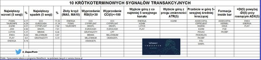 Sygnał kupna na wskaźniku ruchu kierunkowego (ADX/+DI/-DI) pojawił się natomiast na wykresach Enei, Energii i Playa. Więcej szczegółów znajduje się w załączonej tabeli.