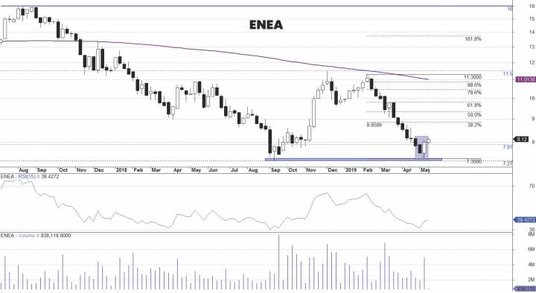 Podwójne dno widoczne na wykresie długoterminowym stanowi straszak dla podaży i umożliwia wyprowadzenie wzrostowej kontry. Nadrzędnie wciąż dominuje bessa, a do zmiany trendu jest jeszcze daleka droga, ale sygnał kupna, jaki pojawił się w ubiegłym tygodniu (wyłamanie sufitu czarnej świeczki) poparty obrotami stanowi pretekst do zwyżki. Lokalnie może pojawić się problem z wybiciem linii trendu spadkowego i realne jest cofnięcie w okolice majowego denka. Dopóki jednak 7,35 zł jest bronione, dopóty kreski są na korzyść byków.