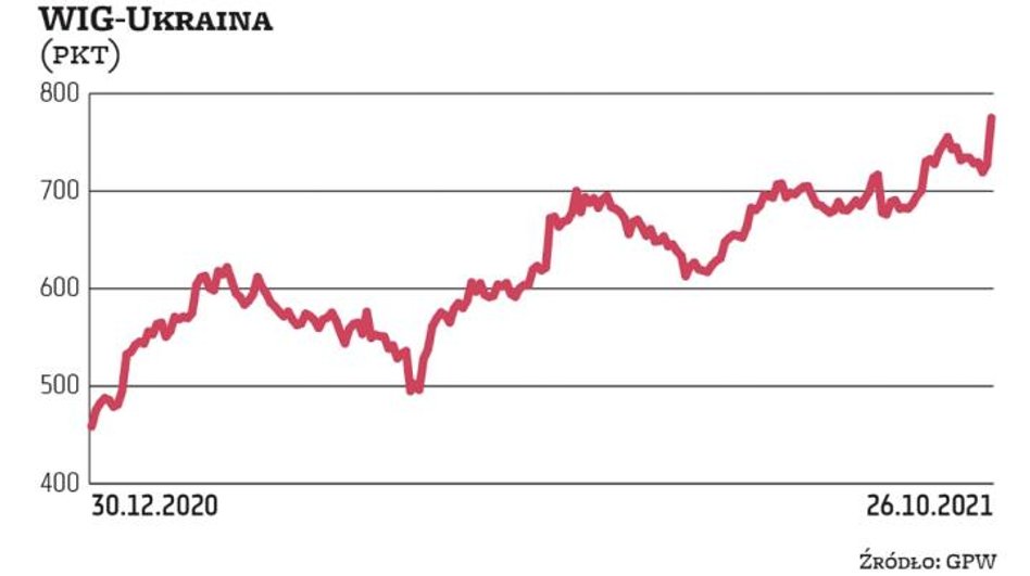 W poniedziałek indeks grupujący ukraińskie firmy wzrósł o ponad 5,3 proc., osiągając poziom 775 pkt. W tym miejscu warto dodać, że indeks WIG-spożywczy, w którego portfelu ukraińskie firmy mają ponad 80-proc. udział, zbliżył się do poziomu 5 tys. pkt, który udało się pokonać jedynie w ujęciu intraday w 2011 r. Spośród wszystkich podmiotów zgrupowanych w indeksie WIG-Ukraina od ubiegłego tygodnia zdecydowanie największy wzrost odnotowuje Milkiland, firma specjalizująca się w produkcji nabiału. Jej notowania podskoczyły w tym czasie o ponad 135 proc., do 2,4 zł. Co ciekawe, firma od miesięcy nie opublikowała żadnego znaczącego komunikatu giełdowego. Inwestorzy chętnie kupowali także akcje grup rolniczych: KSG Agro oraz Agrotonu. Ceny ich akcji zwiększyły się od ubiegłego tygodnia o odpowiednio 34,5 proc., do 5,7 zł, oraz o 32,5 proc., do 11,1 zł. Rosły także notowania Astarty. Kurs akcji producenta cukru podskoczył od zeszłego tygodnia o 6,4 proc. a w ciągu miesiąca o około 20 procent.