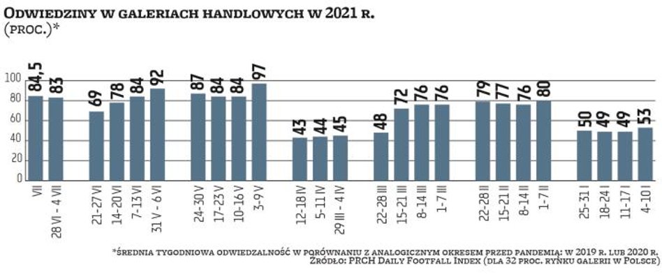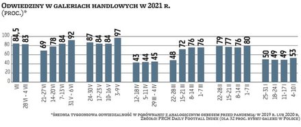 Rozmowom o obniżce czynszów w galeriach sprzyjają dane mówiące, że ruch w galeriach handlowych jest nadal mniejszy niż przed pandemią i niepewność, czy konsumenci wrócą do dawnych nawyków. W zależności od źródła mowa jest o kilkunasto– lub ponad 30-proc. różnicy względem 2019 r. W VRG szacują, że ubytek wynosi około 25 proc.