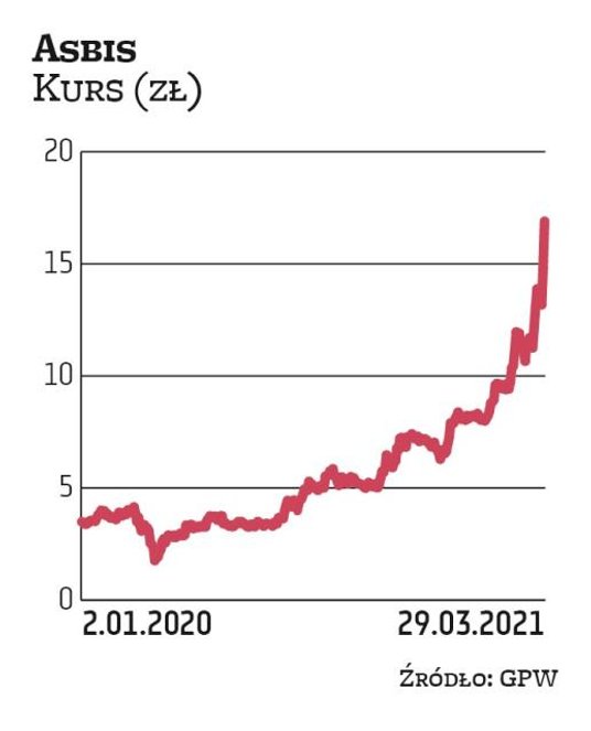 Ta ostatnia spółka rano opublikowała prognozy na 2021 r., z których można wnioskować, że dystrybutorzy generalnie są spokojni o popyt i kondycję sektora. Te dobre nastroje są też odzwierciedlone w ich notowaniach: każda z trzech powyższych spółek ma już za sobą mocne wzrosty. Największe – Asbis. W poniedziałek jego kurs sięgał 17 zł, wobec niespełna 3 zł dwanaście miesięcy temu.
