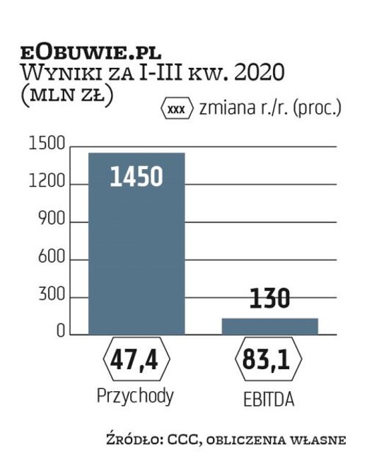 Po spadku o 11 proc. w I półroczu w III kwartale przychody grupy były wyższe rok do roku o 4 proc. i wyniosły 1,5 mld zł. Zysk operacyjny powiększony o amortyzację (EBITDA) był dodatni i zamknął się sumą 176 mln zł wobec 193 mln zł rok wcześniej. Wynik operacyjny grupy był jednak ujemny (8 mln zł), podczas gdy rok temu CCC wykazało 16 mln zł zysku operacyjnego. – Dzięki wysokiej dynamice e-commerce i bardzo dobrej konwersji w sklepach udaje się poprawiać wyniki rok do roku mimo, że ruch w sklepach był niższy o kilkanaście procent – powiedział, omawiając te dane, Marcin Czyczerski, prezes CCC.