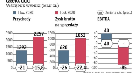 1,29 mld zł, o 21 proc. mniej niż przed rokiem, wyniosły przychody obuwniczej Grupy CCC z Polkowic w II kwartale 2020 roku, czyli jedynym kwartale, w którym galerie handlowe nie działały cały miesiąc.