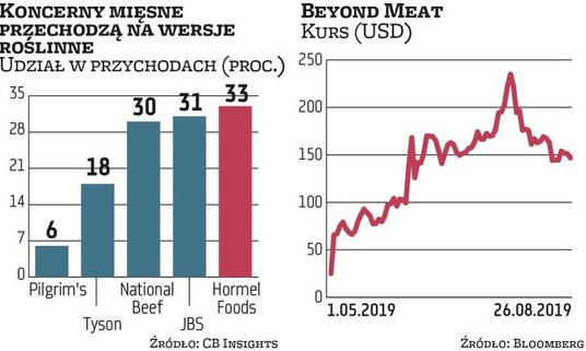 Akcje producenta wegańskiej żywności obecnie wyceniane są po niemal 150 USD. Pod koniec lipca były jeszcze droższe – ponad 230 USD. Obecnie kapitalizacja giełdowa spółki to około 9 mld dolarów i można oczekiwać, że nadal będzie rosła. Firma stale poszerza bazę sklepów i restauracji – obecnie jej ofertę można dostać w ponad 32 tys. miejsc, a to nie koniec. Firma produkuje na bazie białka z soi, soczewicy czy łubinu produkty, które smakiem znacząco nie odbiegają od mięsa. W akcje firmy jeszcze przed debiutem giełdowym zainwestowali mi.n. Leonardo DiCaprio i Bill Gates.