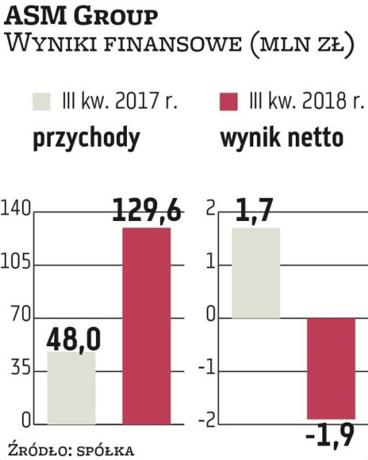 W III kwartale przychody grupy ASM wzrosły na każdym z europejskich rynków i wyniosły 129,6 mln zł. Przed rokiem w takim samym okresie firma miała 48 mln zł obrotów. Pogorszył się jednak wynik netto – firma zanotowała ponad 1,9 mln zł straty netto z działalności kontynuowanej w porównaniu z 1,7 mln zł zysku przed rokiem.