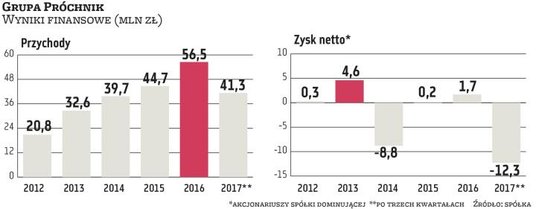 Główne zobowiązanie Próchnika – wobec obligatariuszy – to ok. 11 mln zł plus odsetki. – Mamy też ok. 3 mln kredytu bankowego. Jesteśmy w sporze z jedną z bankowych instytucji, nie możemy korzystać z kredytu, ale też nie można obecnie mówić o wymagalności zobowiązania. Stan prawny nie jest ustalony. Oprócz tego sporą kwotę stanowią zobowiązania wobec galerii. Jest trochę długów prywatnych, pomostowych, oraz u dostawców – wylicza Kutrzeba.