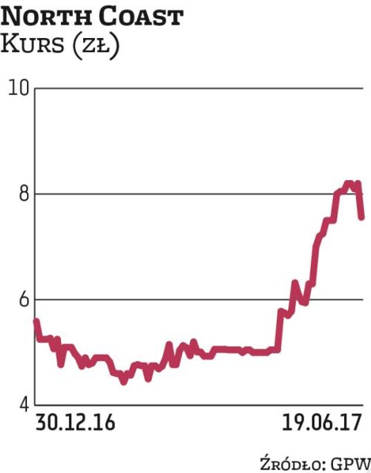 Na otwarciu sesji w poniedziałek kosztowały 8,03 zł, podczas gdy w maju notowania oscylowały wokół 5 zł. Stopa zwrotu z ostatniego półrocza jest jeszcze wyższa, sięga 59 proc. Wygląda to niezwykle korzystnie, ale jeśli spojrzeć na perspektywę ostatniej dekady – widać, że kurs akcji odzyskał tendencję wzrostową po długotrwałych spadkach. W 2007 r. notowania North Coast wynosiły 63 zł, po czym nastąpił pięcioletni okres spadków. W 2012 r. osiągnęły minimum na poziomie 3,4 zł.
