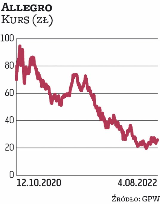 Mocnym wzrostem zareagowały w czwartek notowania Allegro na opublikowane szacunki wyników za I półrocze. Po południu akcje drożały, przy wysokim obrocie, o prawie 8 proc., do ponad 27 zł. Od minimum z czerwca tego roku kurs zyskał 41 proc. Ale do odrobienia strat z ostatnich kilkunastu miesięcy droga jeszcze daleka. Obecnie kurs jest o 37 proc. niżej niż cena akcji z IPO.