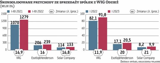 Poznański Solar w styczniu br. wykazał o 21 proc. wyższe przychody (9,9 mln zł) niż rok temu (8,2 mln zł). Sklepy oferujące produkty marki, w tym salony własne, outlety oraz sklepy franczyzowe, odpowiadały za 8,4 mln zł (6,9 mln zł rok temu). Również o około 20 proc. wyższe są styczniowe obroty sklepów Esotiq & Henderson. Grupa uzyskała w pierwszym miesiącu 2023 r. 20,5 mln zł przychodu. Około 25 proc. (4,5 mln zł) wpływów sieci sklepów z bielizną przyniósł jej e-commerce. Były one wyższe niż rok wcześniej o 15 proc. To zmiana analogiczna do wielkości podwyżek cen, które zapowiadał na naszych łamach prezes spółki Krzysztof Jakubowski. Esotikowi udało się również – ku zaskoczeniu analityków domu maklerskiego BDM – poprawić marżę brutto na sprzedaży. Wyniosła ona w pierwszym miesiącu 2023 r. o 1 pkt proc. więcej niż rok wcześniej, bo 64 proc. Grupa tnie koszty. Jej powierzchnia handlowa była o 4 proc. niższa niż rok wcześniej i wynosiła 18,05 tys. mkw.