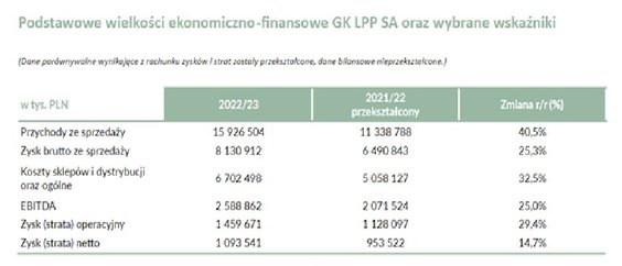 4,18 mld zł przychodu, 755 mln zł EBITDA, 435 mln zł zysku operacyjnego i 185,5 mln zł zysku netto wykazała w ostatnim kwartale roku obrotowego 2023/23 Grupa LPP z Gdańska, największa sieć sklepów z odzieżą w kraju notowana na warszawskiej giełdzie.