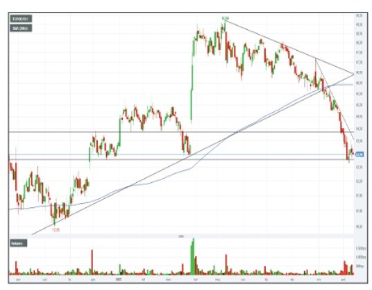 Od czterech ostatnich sesji wsparcie przy 13 zł w obrazie technicznym Eurocashu jest jednak respektowane przez rynek. W związku z tym, że jego charakter jest długoterminowy, dla popytu może być to punkt zaczepienia i dobra okazja do odreagowania. W razie zmiany trendu walorów Eurocashu na pierwszy poważny sprawdzian nie trzeba będzie długo czekać, bo już przy 13,9 zł rysuje się poważny opór.