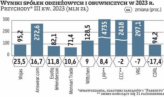 Na warszawskiej giełdzie powoli kończy się sezon publikacji sprawozdań za trzeci kwartał obrotowego roku 2023. W sektorze odzież i obuwie inwestorzy czekają na piątkową publikację raportu Wittchenu (piątek 24 listopada), a potem Esotiq&Henderson, Monnari Trade oraz gigantów: CCC (grupa pokazała na razie dane wstępne i skorygowała w dół założenia roczne) i – dopiero w grudniu – LPP.