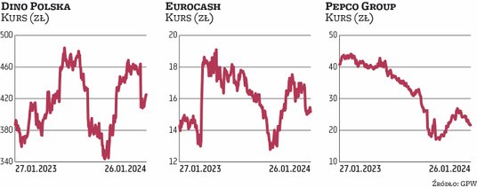 – Słabsze zachowanie spółek z sektora detalicznego handlu żywnością (Dino, Jeronimo Mertins, Eurocash) jest skutkiem przede wszystkim gorszych od oczekiwań wyników sprzedaży porównywalnej (like for like), raportowanych przez Biedronkę w IV kwartale 2023 r. – mówi Janusz Pięta, analityk BM mBanku. Jak tłumaczy, zmniejszenie dynamiki sprzedaży porównywalnej Biedronki w IV kwartale 2023 r. w porównaniu z III kwartałem przekraczało spadek inflacji żywności, co oznacza, że jeszcze nie widzimy polepszenia się momentum wolumenu pomimo niższej dynamiki cen. – Dodatkowo Jeronimo Martins zaznaczyło, iż zwiększyło lukę pomiędzy inflacją żywności w gospodarce a inflacją w koszyku Biedronki, co oznacza zwiększone inwestycje w ceny. Ponadto można oczekiwać, że w koszyku zarówno Biedronki, jak i Dina występuje w styczniu już deflacja, co na pewno nie napawa optymizmem inwestorów, spoglądając z perspektywy dynamicznie rosnących kosztów, przede wszystkim kosztów wynagrodzeń – podkreśla ekspert BM mBanku.