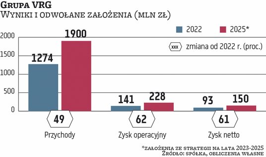 Plan przyjęty przez władze spółki w czerwcu 2023 r. zakładał, że co roku przychody grupy będą się powiększać w dwucyfrowym tempie, a w 2025 r. zbliżą się do 1,9 mld zł. Docelowa marża operacyjna miała sięgnąć 12 proc., a brutto ze sprzedaży 56–57 proc. 43 mln zł grupa miała wydać na rozwój i modernizację sieci sklepów. Ich powierzchnia miała urosnąć do 62,7 tys. mkw. Jak wyliczaliśmy, oznaczać to mogło, że w 2025 r. grupa wykaże 228 mln zł zysku operacyjnego i 150 mln zł zysku netto.