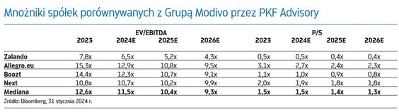 PKF Advisory wycenia udziały Grupy Modivo, właściciela platform internetowych Modivo i eObuwie, zaplecza logistycznego magazynu oraz sieci kilkudziesięciu punktów stacjonarnej sprzedaży detalicznej na potrzeby obliczenia wartości zabezpieczenia obligacji wyemitowanych przez CCC w 2018 r.