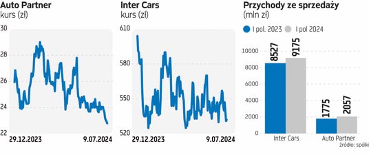 W okresie pierwszych sześciu tegorocznych miesięcy przychody Inter Carsu zwiększyły się rok do roku o niecałe 8 proc., osiągając prawie 9,2 mld zł, a sprzedaż Auto Partnera wzrosła o blisko 16 proc., do 2,05 mld zł. To wyraźnie wolniejsze tempo niż to, do którego spółki przyzwyczaiły rynek w poprzednim roku, gdy Auto Partner wypracował blisko 30 proc. wzrostu przychodów, a dynamika jego większego konkurenta wyniosła ponad 18 proc. Jak podkreślają analitycy, w 2023 roku dystrybutorzy części mieli wyjątkowo korzystne warunki do wzrostu, co przełożyło się na ponadprzeciętnie wysokie tempo poprawy przychodów. – Bieżący rok w branży dystrybutorów autoczęści pozostaje wymagający, przy czym było to częściowo oczekiwane. O ile długoterminowe trendy się utrzymują, poprawa zaś sytuacji konsumentów wspiera popyt na naprawy i serwis, o tyle w tym roku nie ma aż tak wysokiej presji na podwyżki cenników. Powyższe oraz jednocześnie wysoka baza roku ubiegłego przekłada się na niższe raportowane dynamiki w minionych miesiącach – wskazuje Adam Anioł, analityk BM BNP Paribas.