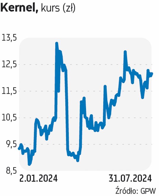 Notowania Kernela w ostatnich miesiącach poruszają się w trendzie bocznym, w okolicach 10–12 zł. Już od ponad roku trwa walka o delisting spółki, do którego dąży wiodący akcjonariusz Namsen, kontrolowany przez Andrija Werewskiego. W rozmowie z „Parkietem” Kernel potwierdza, że plan wycofania spółki z giełdy jest aktualny.