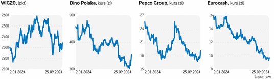 Zarówno Dino Polska, jak i Pepco Group w tym roku nie wspierały indeksu WIG20 w zwyżkach i nadal są mocno pod kreską. Uwzględniając środowe zwyżki Pepco, nadal było 27 proc. poniżej poziomu zamknięcia 2023 r., a Dino traciło ponad 23 proc. Eurocash na tym tle wypada najgorzej, bo notuje wciąż 38-proc. stratę. W jego przypadku trudno też mówić o zmianie trendu ze spadkowego nawet w krótkim terminie. Kurs jest najniżej od połowy 2022 r., aczkolwiek wyjście ponad poziom 10 zł może zmienić perspektywę.