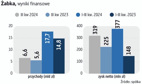 Ogłoszone w poniedziałek po sesji wyniki finansowe najwidoczniej, na początku wtorkowych notowań, spodobały się inwestorom. Akcje Żabki na otwarciu sesji podrożały niemal o 2 proc. do 21,9 zł i były wyżej wyceniane niż w niedawnej ofercie publicznej (21,5 zł). Potem optymizm wyparował i cena akcji po południu spadała o ponad 2 proc.