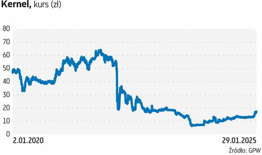Kurs Kernela podczas środowej sesji rósł nawet o 4 proc., do 17,5 zł. Na rynek trafiły nowe informacje dotyczące delistingu. Dominujący akcjonariusz, Namsen (kontrolowany przez ukraińskiego oligarchę Andrija Werewskiego), zwiększył zaangażowanie w kapitale. Przedtem miał 276 914 889 akcji, a teraz 278 947 016. Zmiana wydaje się niewielka, ale ma istotne znaczenie: oznacza przekroczenie 95-proc. granicy, która umożliwia ogłoszenie przymusowego wykupu. Kernel podaje, że teraz ma 95,06 proc. głosów.
