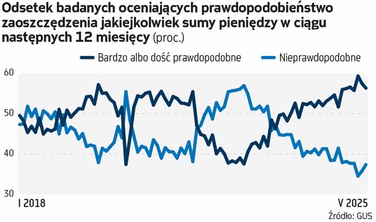 Mimo wszystko, o ile majowe statystyki znajdą potwierdzenie w kolejnych danych, być może coś zmienia się w nastrojach konsumenckich na lepsze. Największym zaskoczeniem jest skokowa poprawa ocen ogólnej sytuacji ekonomicznej kraju w ciągu najbliższych 12 miesięcy. Raptem w ciągu miesiąca odsetek osób uważających, że ta się pogorszy, spadł z około 47 do 39 proc. i był najniższy od roku. Z drugiej strony – to wciąż sporo w kraju z najniższą w UE stopą bezrobocia, a niemal najwyższym wzrostem gospodarczym (acz też np. jednym z najwyższych w UE deficytem sektora finansów publicznych). Poprawy sytuacji ekonomicznej Polski w najbliższych 12 miesiącach spodziewa się raptem 15,5 proc. badanych.
