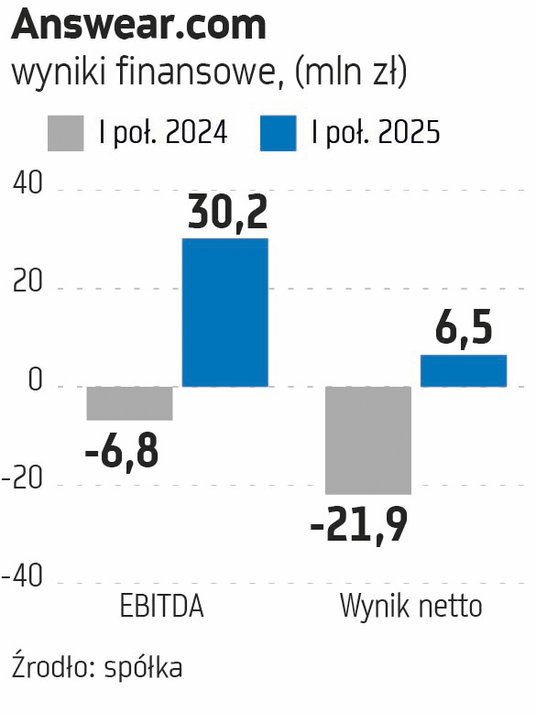 O ponad 7,5 proc. do 31,2 zł urósł na ostatniej sesji minionego tygodnia kurs akcji Answear.com, właściciela platform e-commerce oferujących odzież i obuwie marek z wyższej półki, po tym jak zarząd opublikował sprawozdanie finansowe za I półrocze.