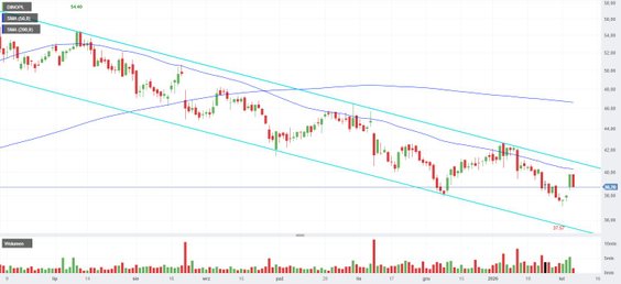 Akcje Dino od około pół roku poruszają się w kanale spadkowym. W ostatnich dniach pojawiły się szanse na przełamanie złej passy, ale ogólna sytuacja rynku krzyżuje plany kupujących. Podczas czwartkowej sesji walory Dino Polska tracą ponad 3,1 proc. i kosztują poniżej 39 zł.